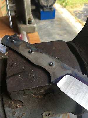 This was the finish point for yesterday and today it goes back in the oven for two temper cycles and tonight I will continue the journey, so please come back as I start the process of grinding the main bevels, handle fitting and shaping.